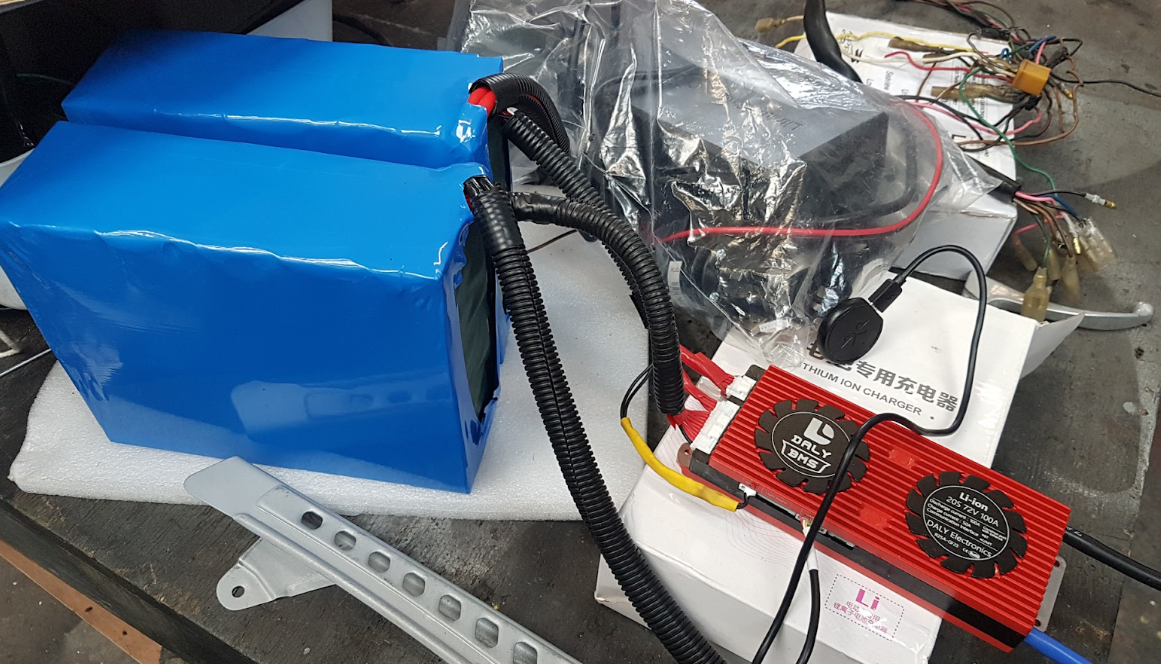 1.76kWh custom battery pack made from reclaimed Tesla 18650 cells.